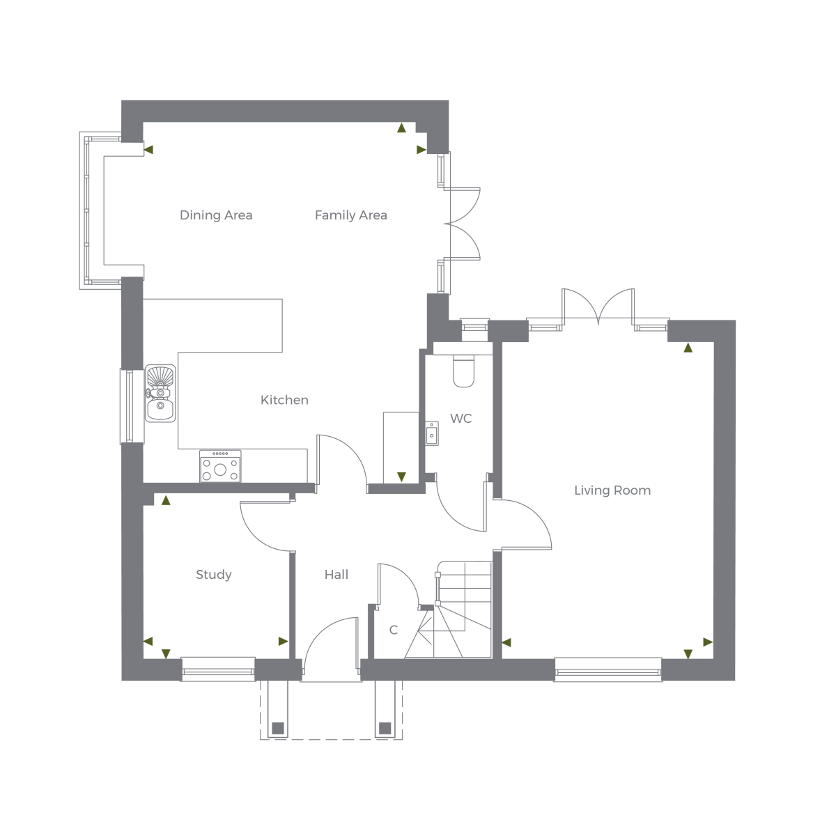 The Banbury is a spacious home offering an open-plan kitchen and dining/family area, a separate living room and a study, in addition to an en-suite main bedroom, three further bedrooms and a family bathroom.
